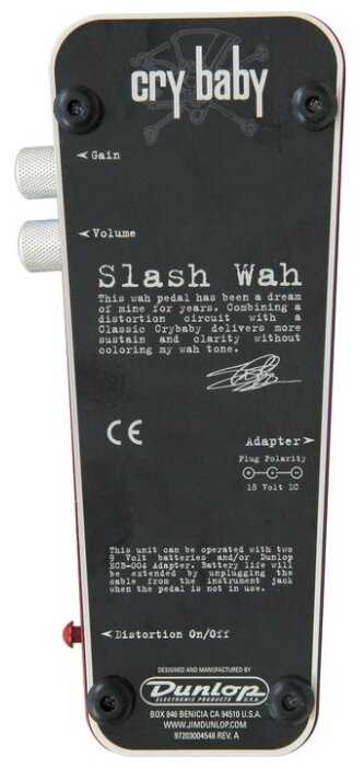 В компании Dunlop SW95 Slash подпись плач ребенка является важным педали, когда пытаюсь играть соло, как сладкий ребенок О'шахты - пистолеты и розы или введите Дрема - Металлика, потому что это дает эффект Вау-Вау, что Слэш и Кирк Хэммет, используемые в этих песнях. Однако, вы не обязательно должны использовать его только с соло или музыку, которая содержит Вах-вах, чем больше вы его используете, тем больше вы можете начать адаптировать его к песням, которые не имеют такого эффекта.