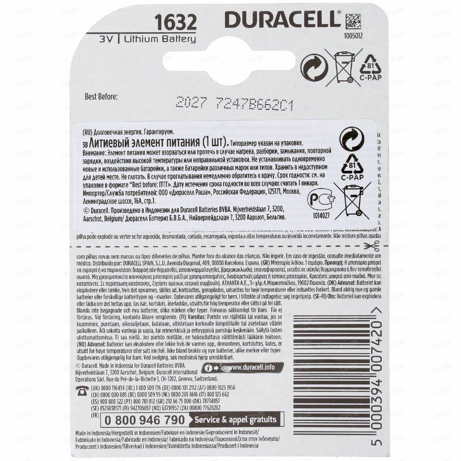 Лучшие цены сегодня на Duracell 1632