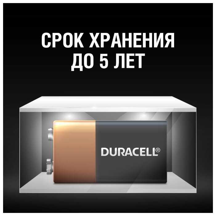 | Дополнительная информация : | Высокая надежность и долговечность Duracell Basic 6LR61-1BL/6LF22-1BL, В неиспользуемом состоянии обеспечивается длительное сохранение заряда так что пользователь может быть уверен что батарейка будет наготове когда ему понадобится энергия, Самая долговечная батарейка размера крона (9V) по результатам тестов 2015 г. на основе международного стандарта МЭК для детекторов дыма, результаты могут отличаться в зависимости от устройства и особенностей использования), Гарантировано прослужит до 5 лет. |