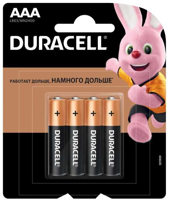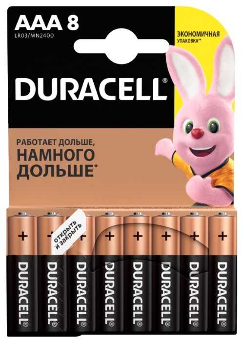- + Щелочные модели типа AAА характеризуются длительным сроком службы и устойчивостью к перепадам температуры окружающей среды. Благодаря этому изделия являются надежным источником энергии. При правильном хранении элементы питания способны поддерживать заряд до 10 лет.