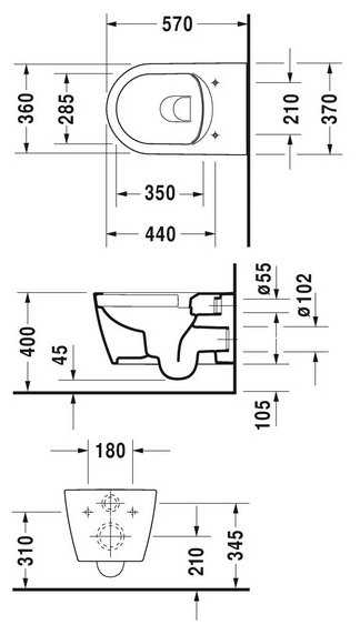 Характеристи DURAVIT ME by Starck 252909 с горизонтальным выпуском