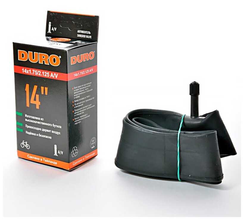 19 отзывов пользователей o DURO Камера велосипедная Durо, 14" дюймов, автониппель Shrader AV, 14 х 1,75/2,125 BHD01002