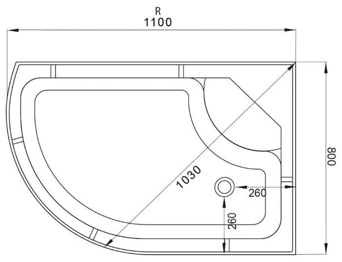 Deto 4511 R N с LED-подсветкой высокий поддон 110см*80см
