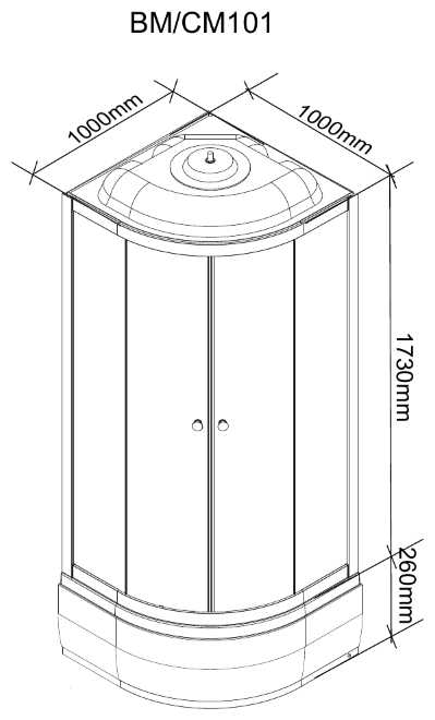 - форма поддона: четверть круга