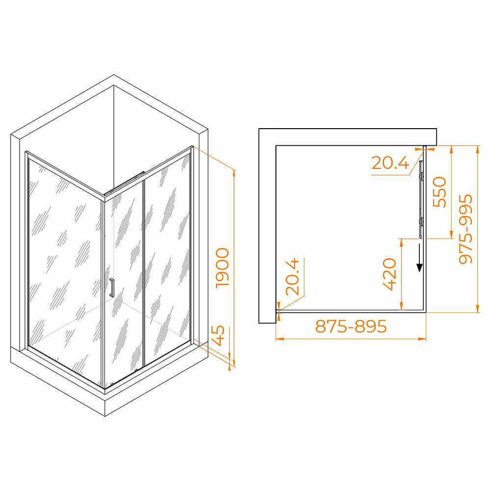 RGW Passage PA-76 (PA-016 + Z-050-2) 1950x1200x900 (матовое стекло сатинат) Хром 35087629-21