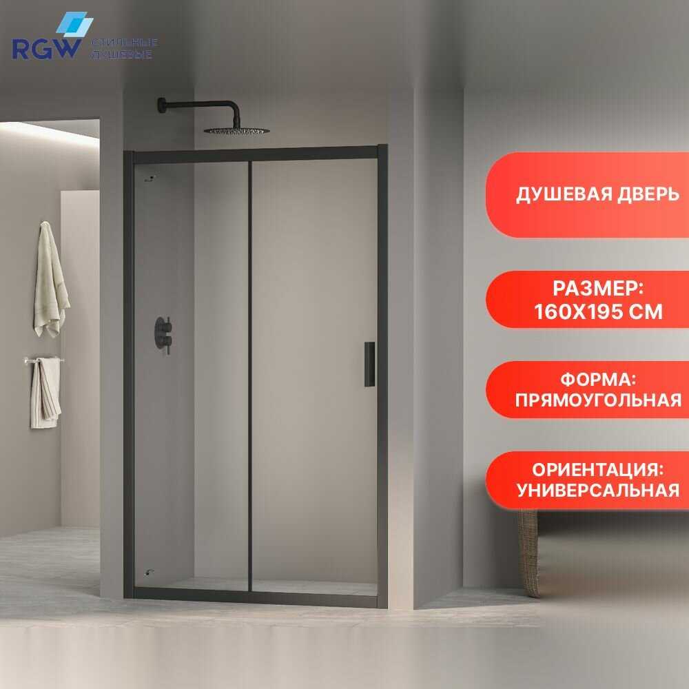 RGW Z-050-3B 100х200 см для душевой двери, профиль черный, стекло прозрачное 6 мм