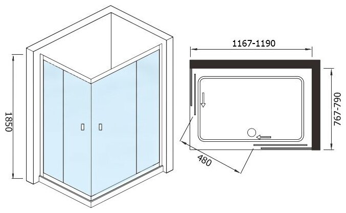 WELTWASSER WW500 С 120/90/189 L/R 120см*90см