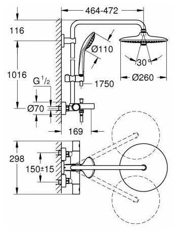 6.4/10 балловHansgrohe Croma E Showerpipe 280 1jet,