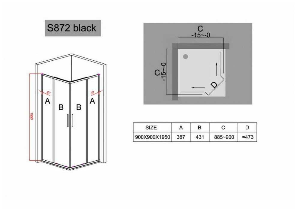 Black&White Stellar Wind S872-90х90 профиль Черный стекло прозрачное
