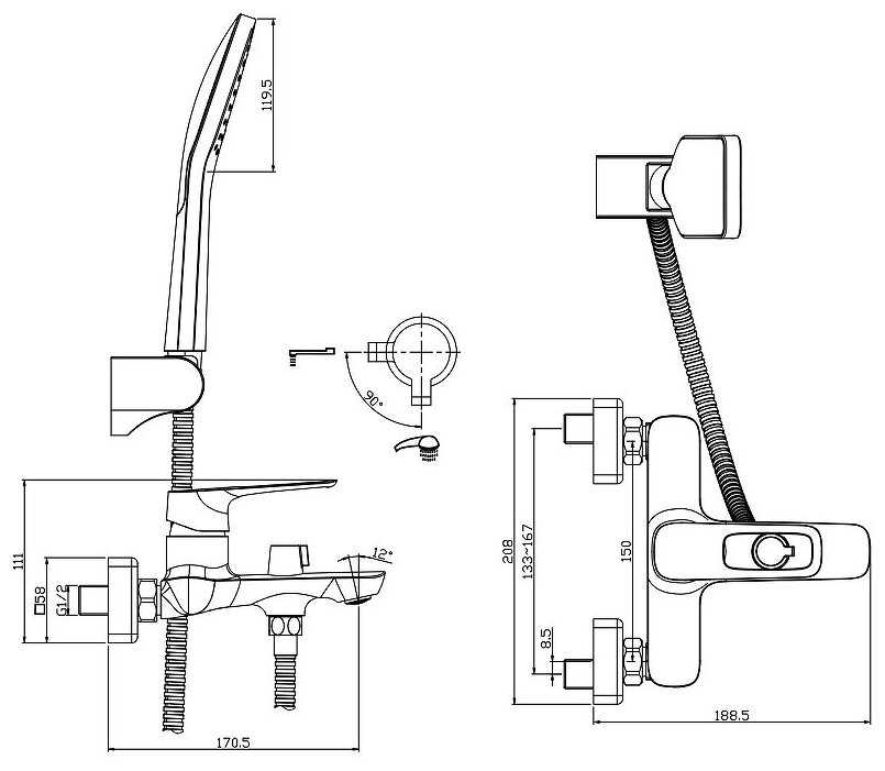 KEUCO 59587010922 IXMO душевой комплект: Душевая штанга 855 мм + ручная душевая лейка с нормальной струей + шланг1600 мм, хром