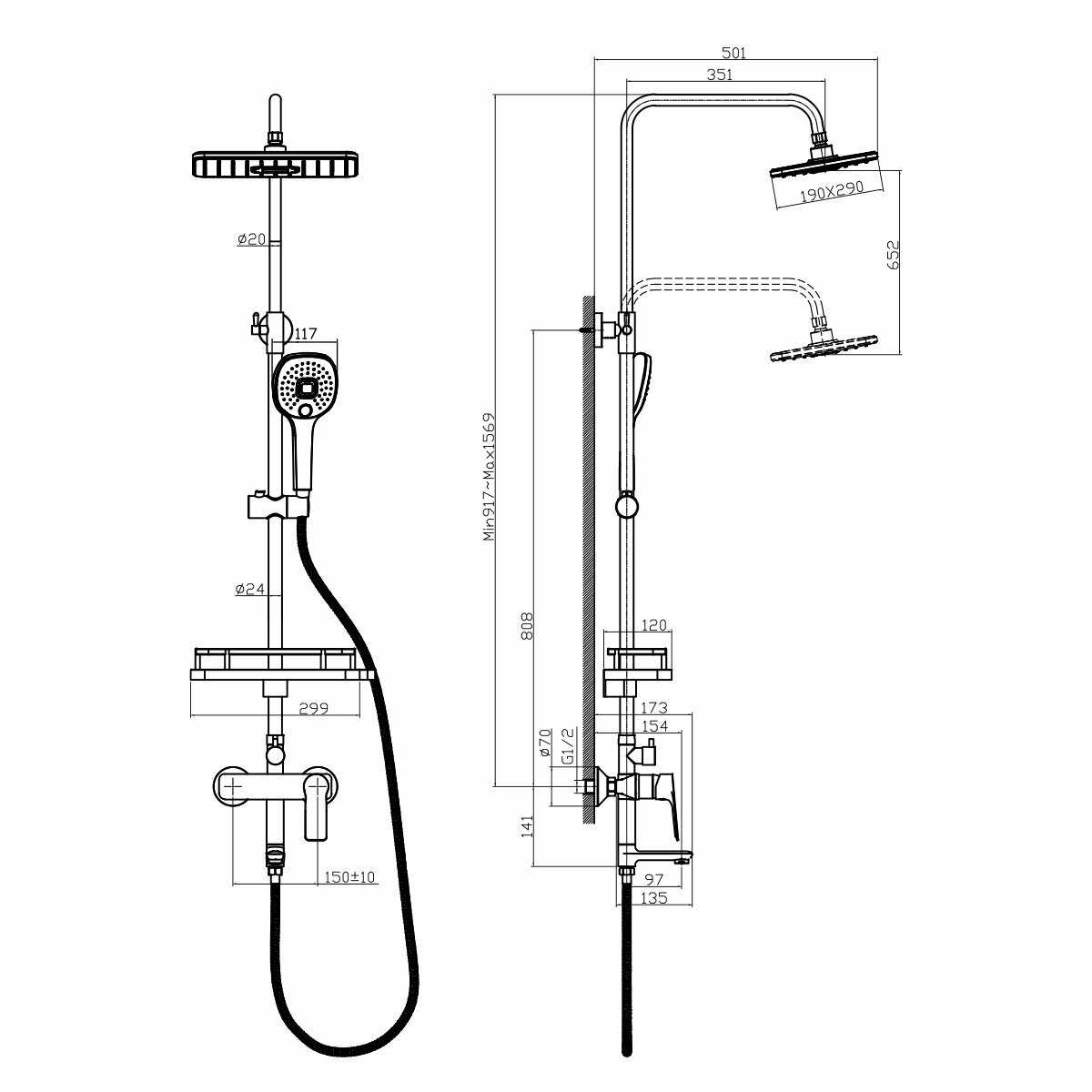 Gappo Душевой комплект с регулировкой температуры и холода с полочкой (YG2496-20)