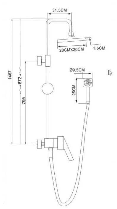 Diadonna D80-335354 с изливом, верхним душем, лейкой, керамические кран-буксы, хром