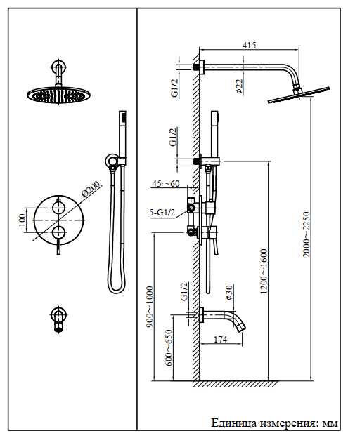 - регулируемый верхний душ