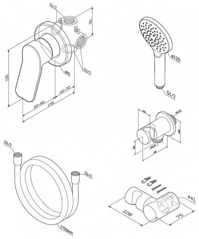 Характеристики:- встраиваемый смеситель с душевой лейкой