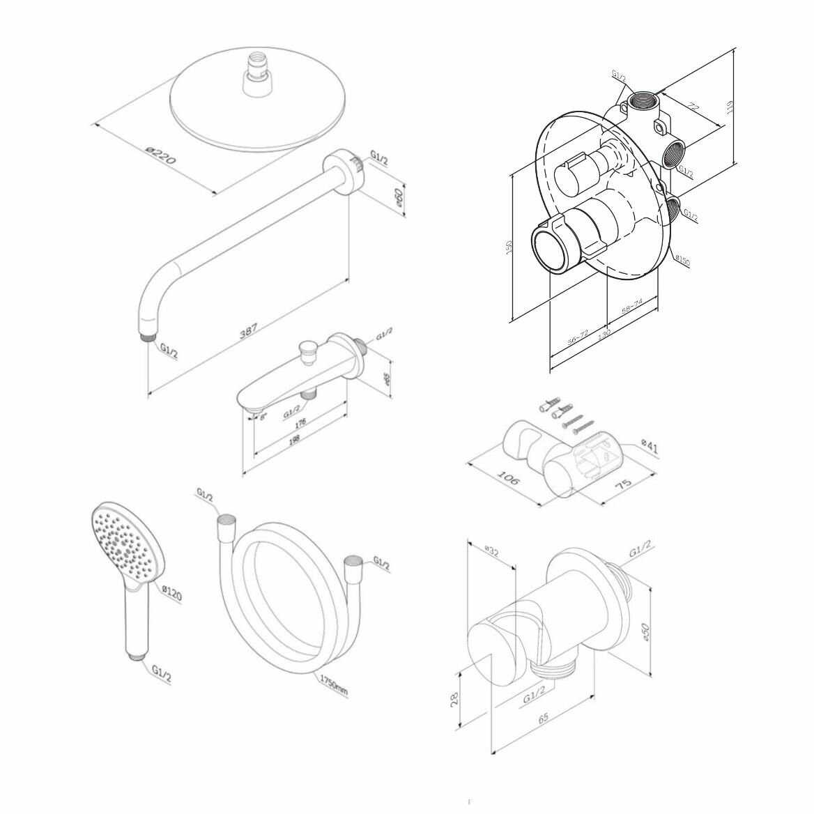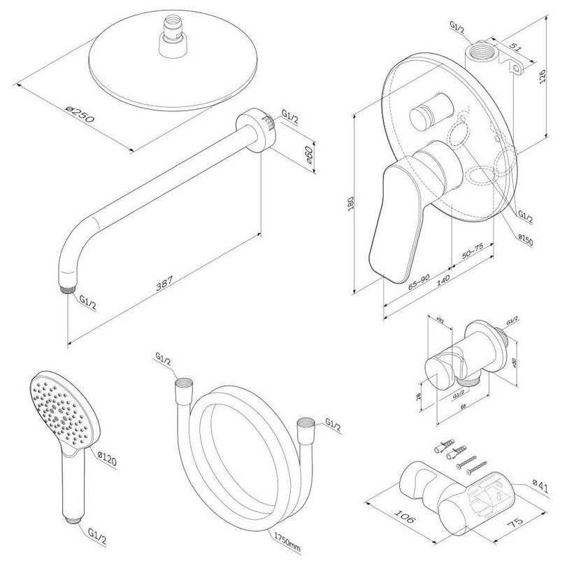 Характеристики:- встраиваемый душевая стойка
