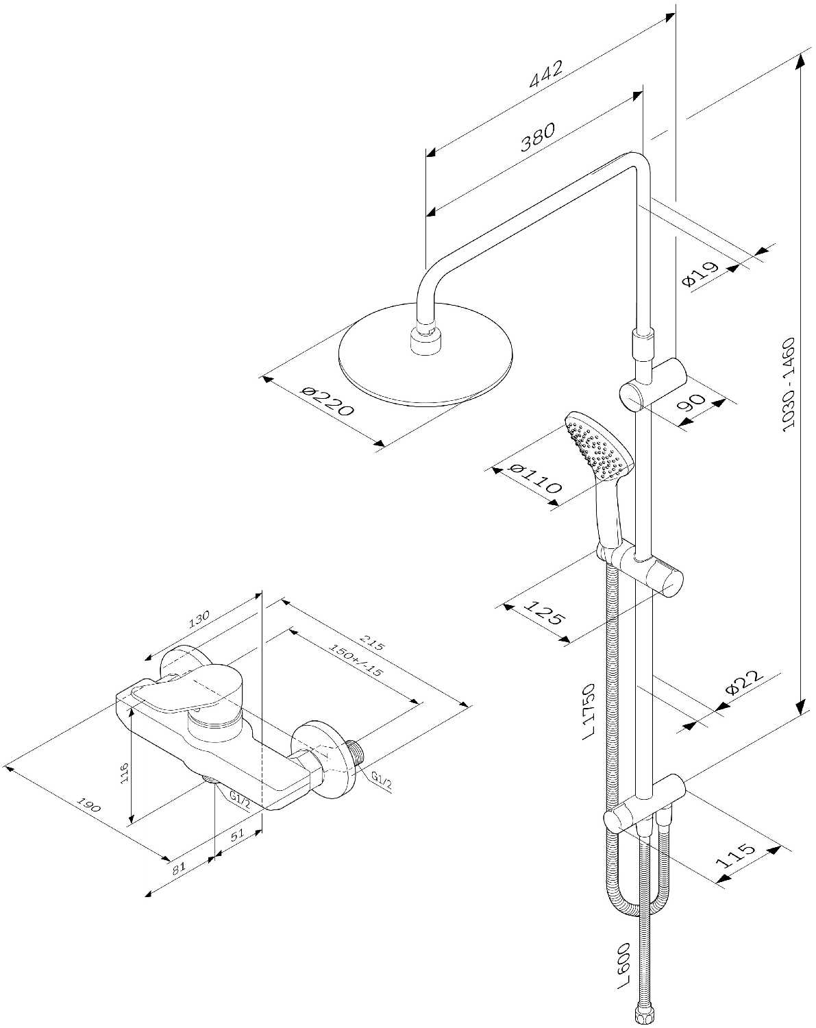 Характеристики:- душевая стойка