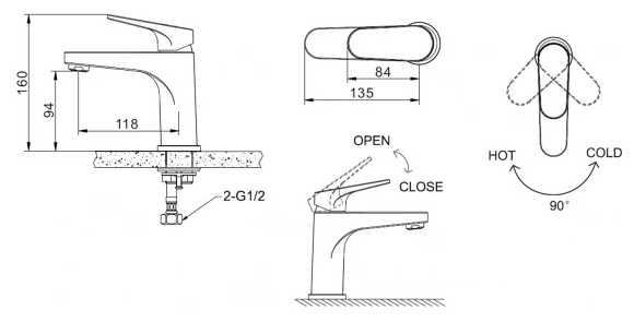 Характеристики:- управление смесителем: рычажное