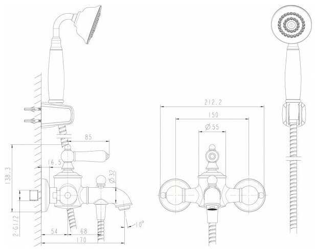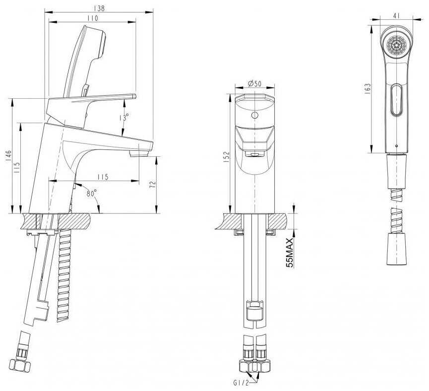 Характеристики:- встраиваемый гигиенический душ
