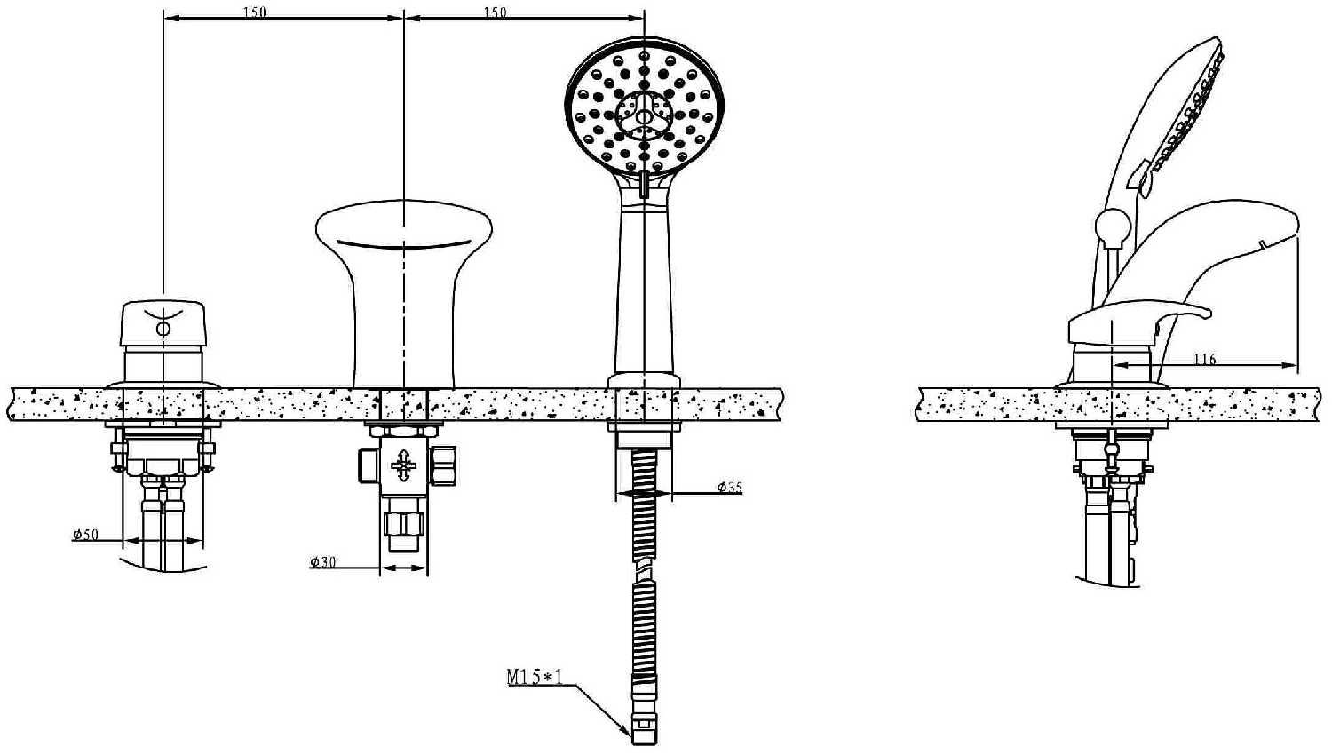 - держатель для душевой лейки: на смесителе