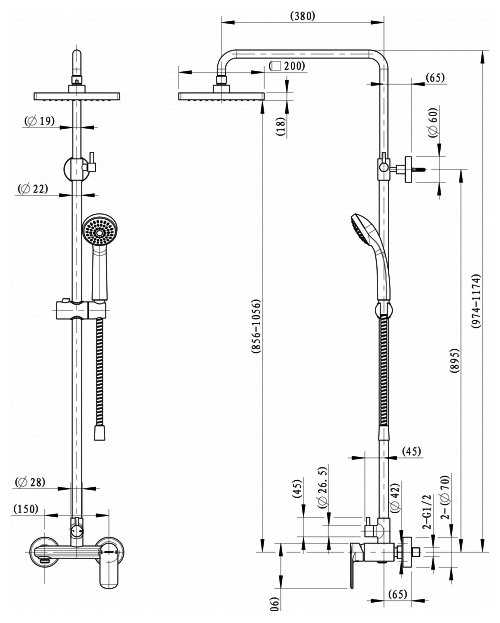 - регулируемый верхний душ