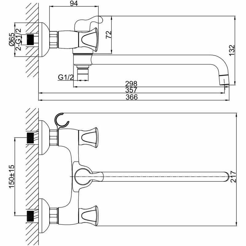 - назначение: для ванны с подключением душа