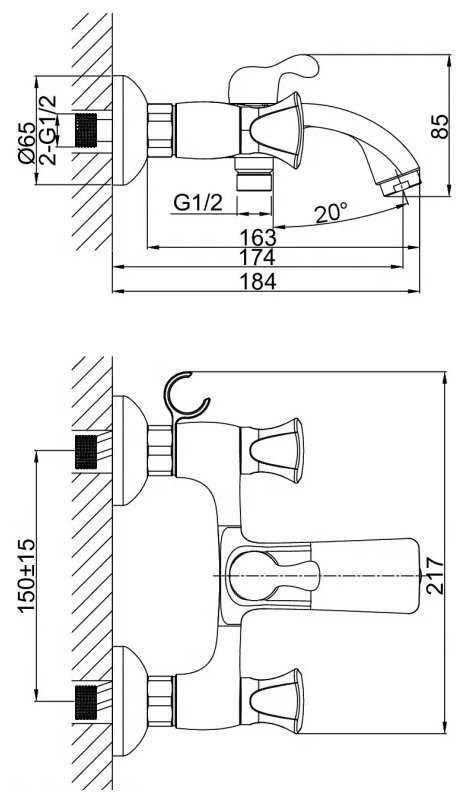 - управление смесителем: вентильное
