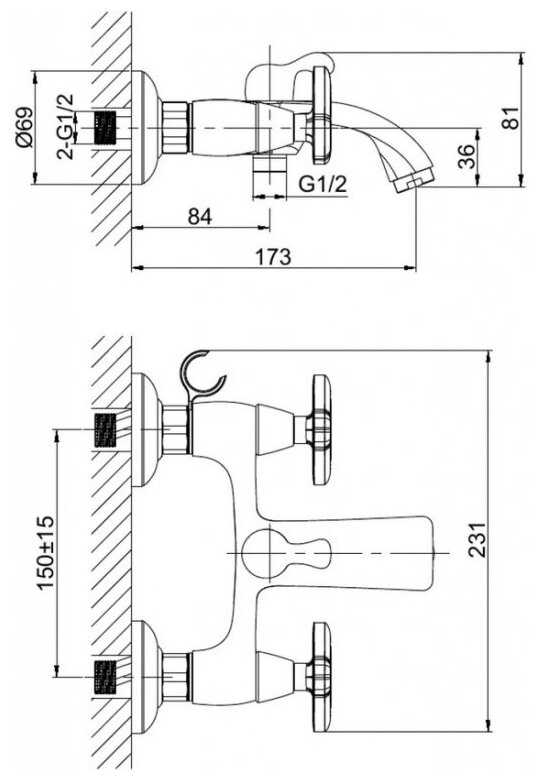 - управление смесителем: рычажное