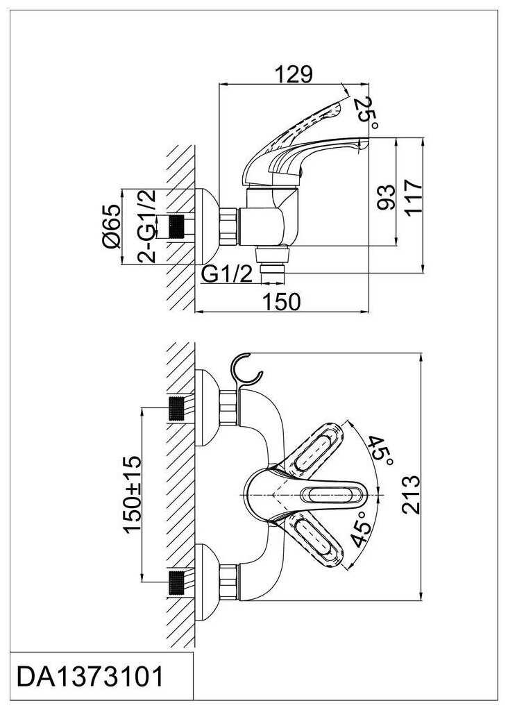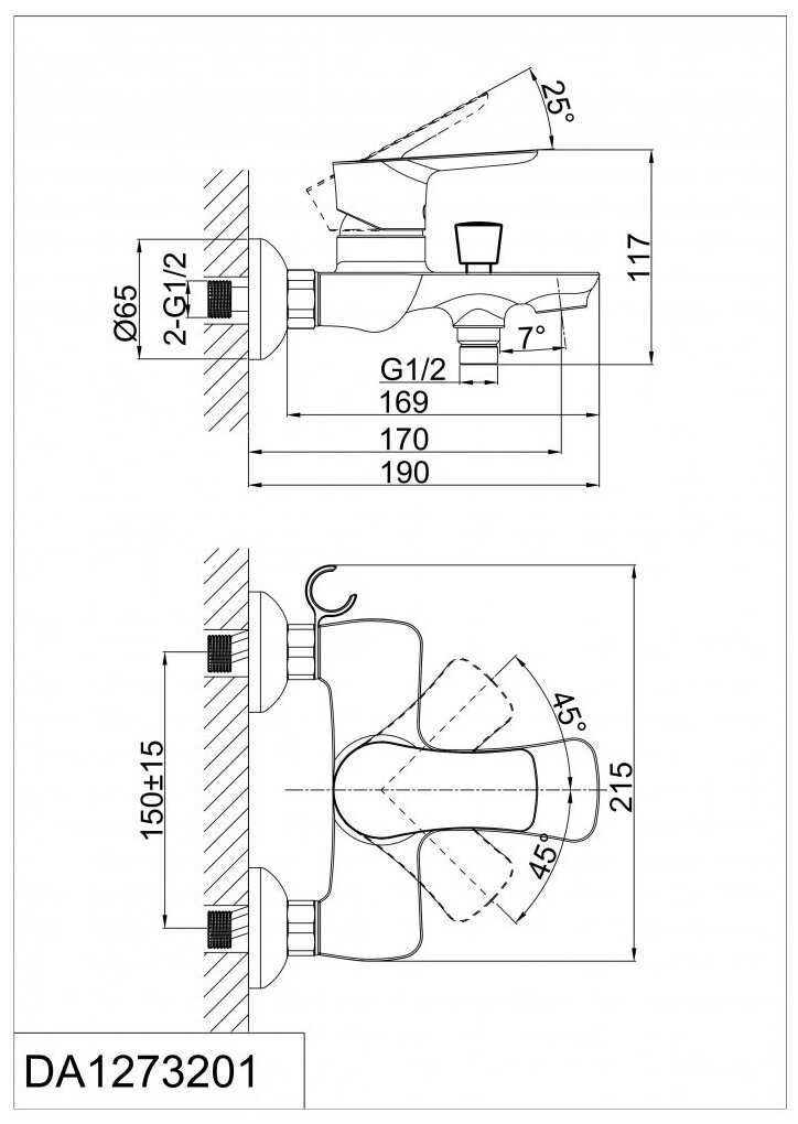 D&K Смеситель с душевой лейкой (DA1273201)