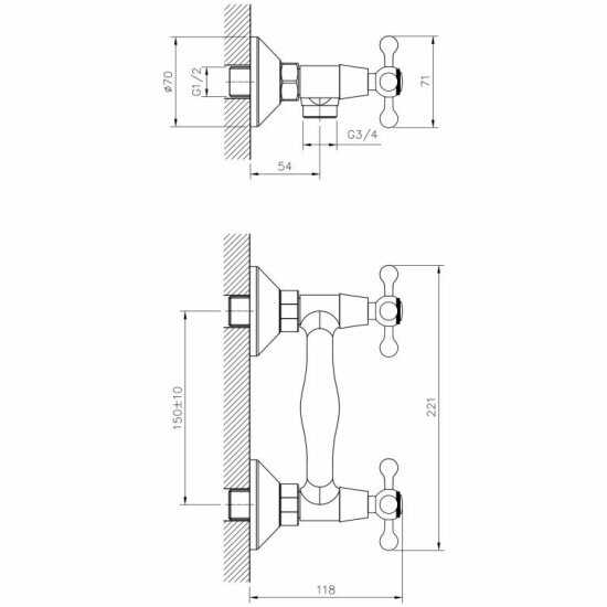 DecoRoom DR21071 для ванны и душа с регулируемой высотой штанги, поворотным изливом и лейкой "Тропический дождь"