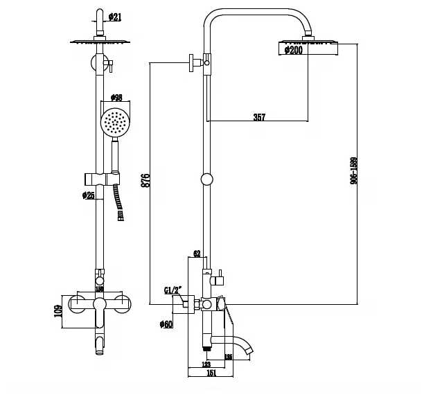 Fmark Душевая стойка со смесителем для ванны хром FM2401 Fmark