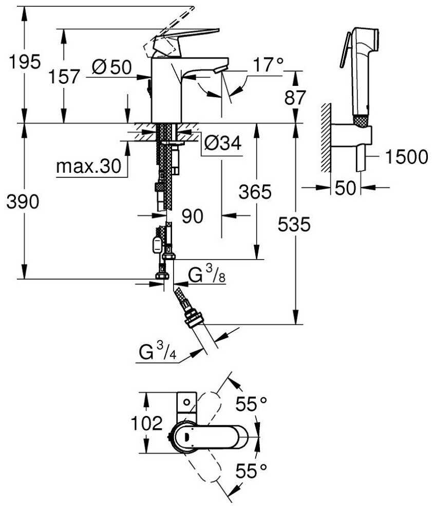 Характеристики:- управление смесителем: рычажное