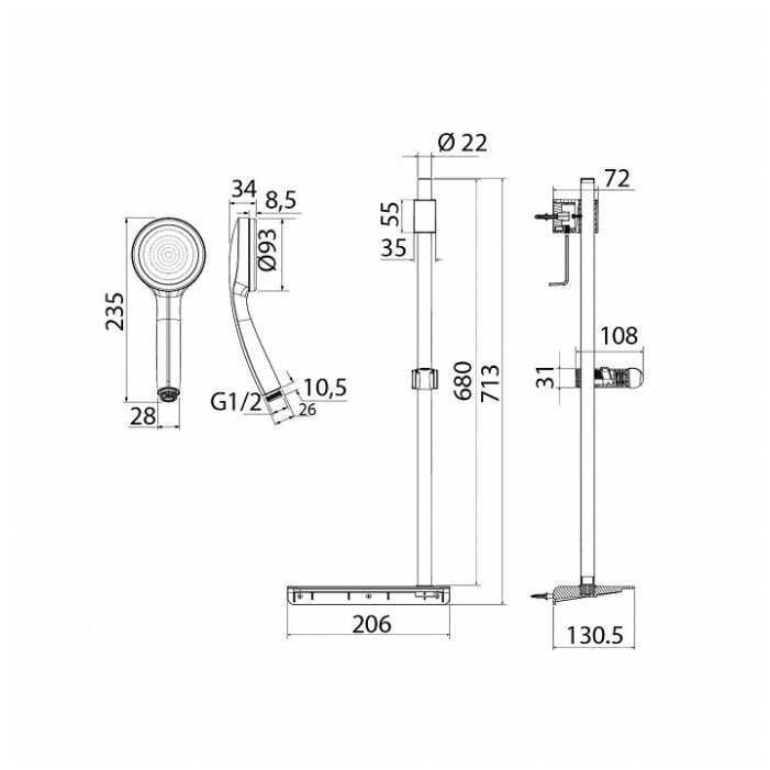Характеристики:- встраиваемый душевой набор (гарнитур)