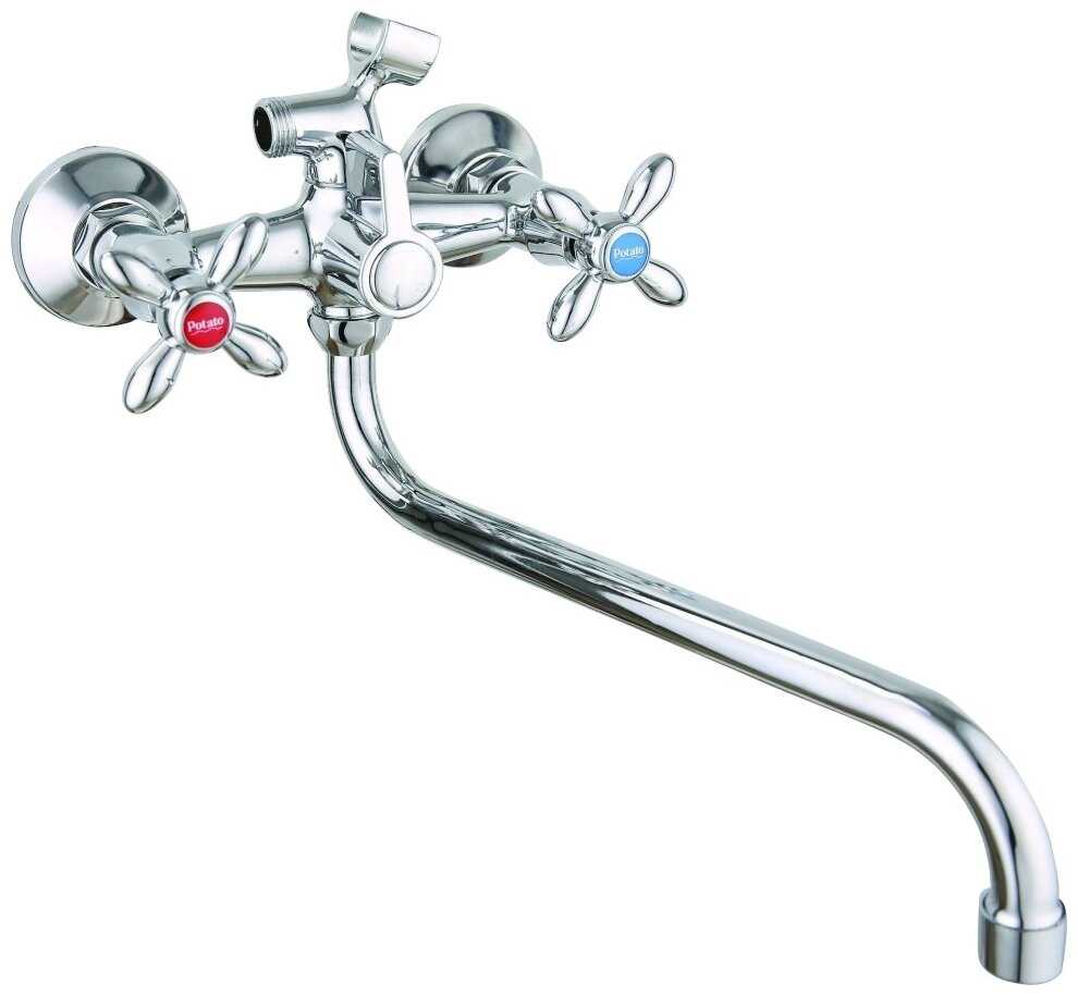 Potato P3076 с высоким поворотным изливом, керамические кран-буксы, хром