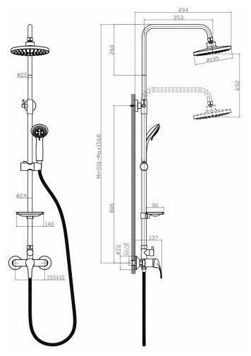 Rossinka A35-45 для душа с регулируемой высотой штанги и лейкой "Тропический дождь"