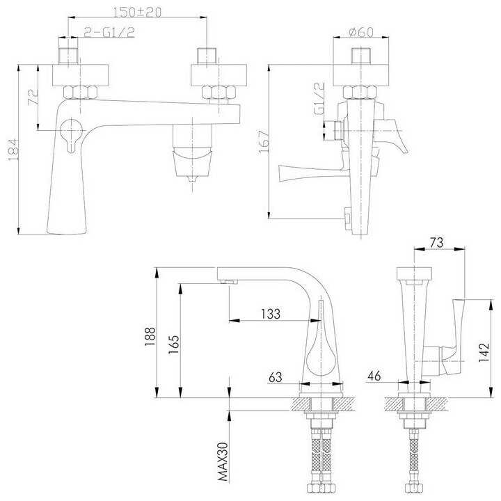Rossinka Silvermix Гигиенический душ Rossinka X X25-58 с термостатическим смесителем