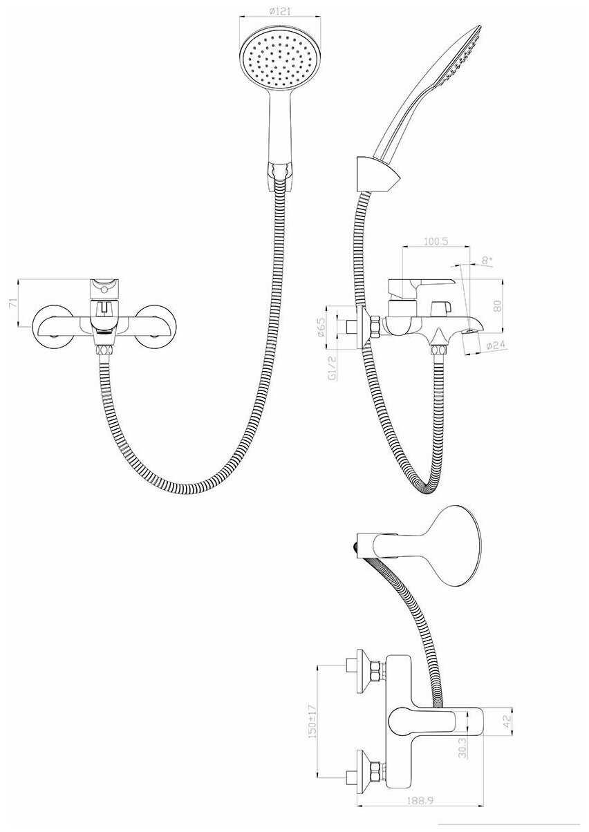 Rossinka Silvermix Смеситель с душевой лейкой (Q02-41)