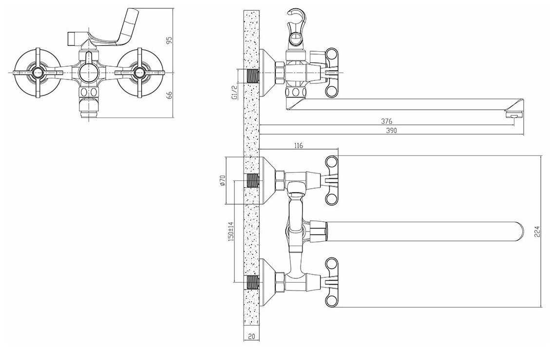 Rossinka Silvermix Смеситель Rossinka RS44-32 для ванны, универсальный