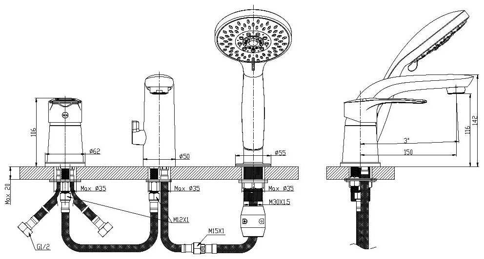 Характеристики:- назначение: для ванны с душем