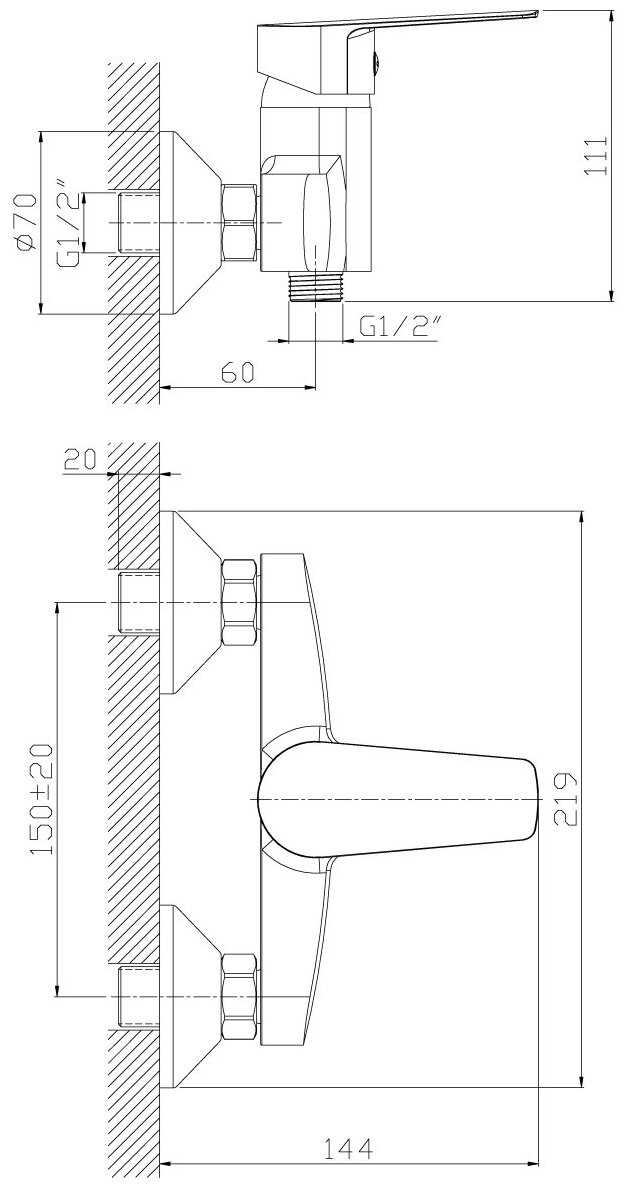 - управление смесителем: вентильное