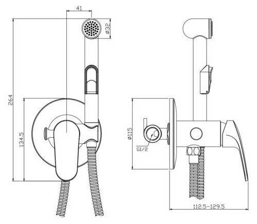 Rossinka Silvermix Смеситель Rossinka RS45-51 с гигиеническим душем, встраиваемый