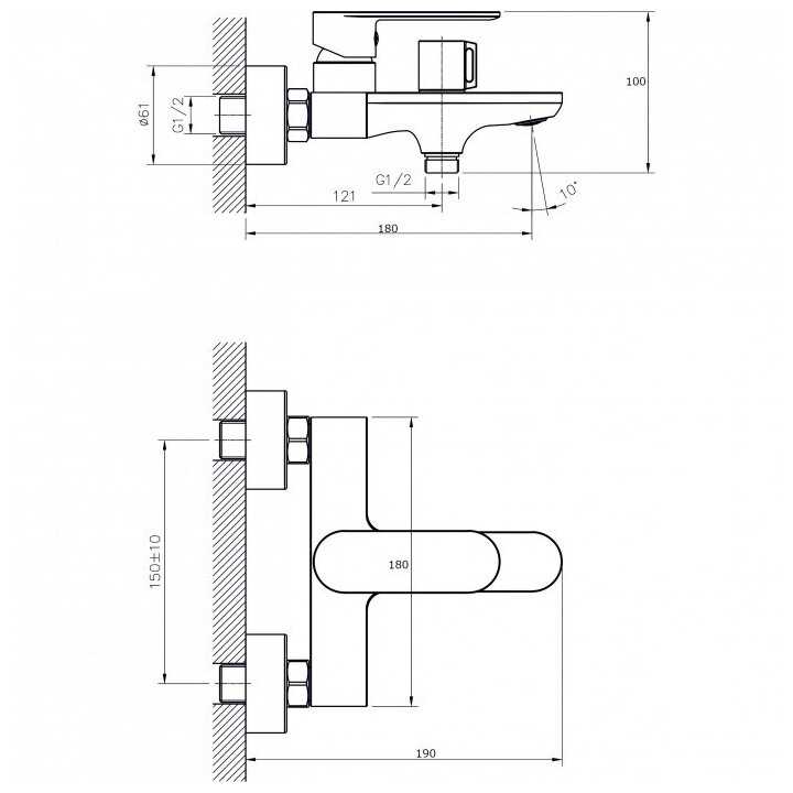- монтаж: на борт ванны