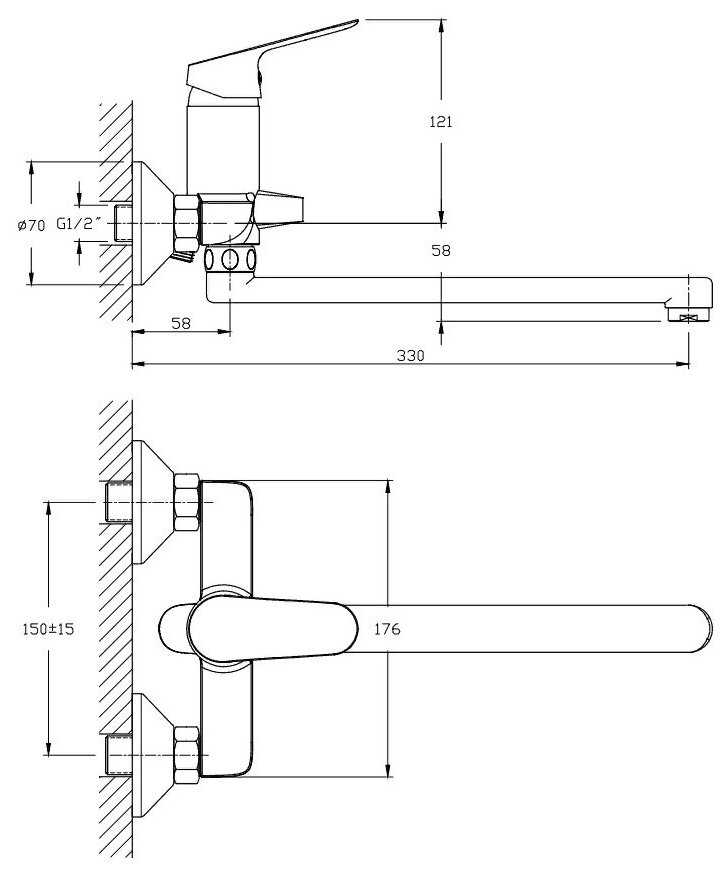 - управление смесителем: рычажное