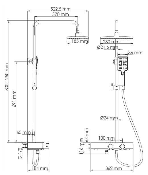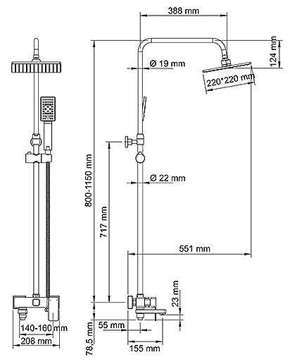 WasserKRAFT Душевой комплект с термостатическим смесителем (A11401)