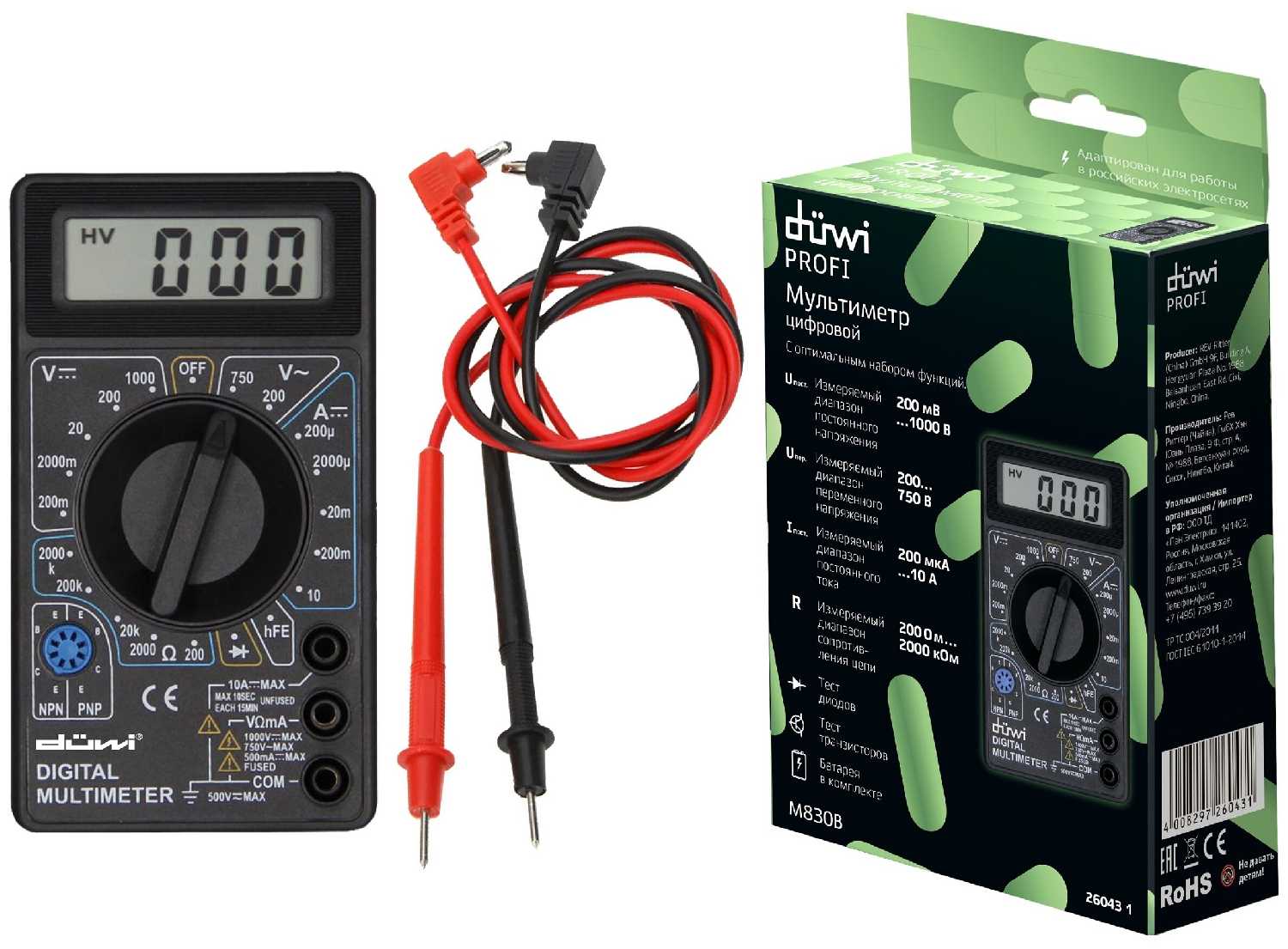 - + Хорошее качество сборки. Укомплектован батареей. Проверил работу на всех пределах. Хорошее совпадение результатов с более дорогим прибором. Демократичная цена. Плотная коробка.