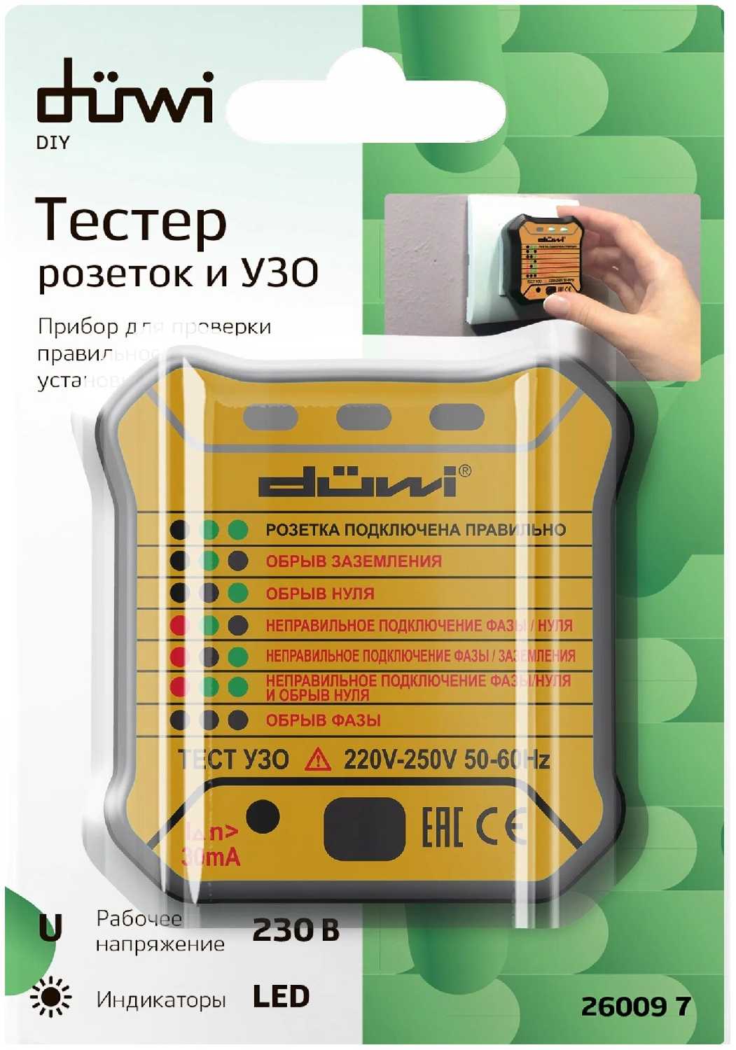 Характеристи Duwi Тестер УЗО цифровой (26009)