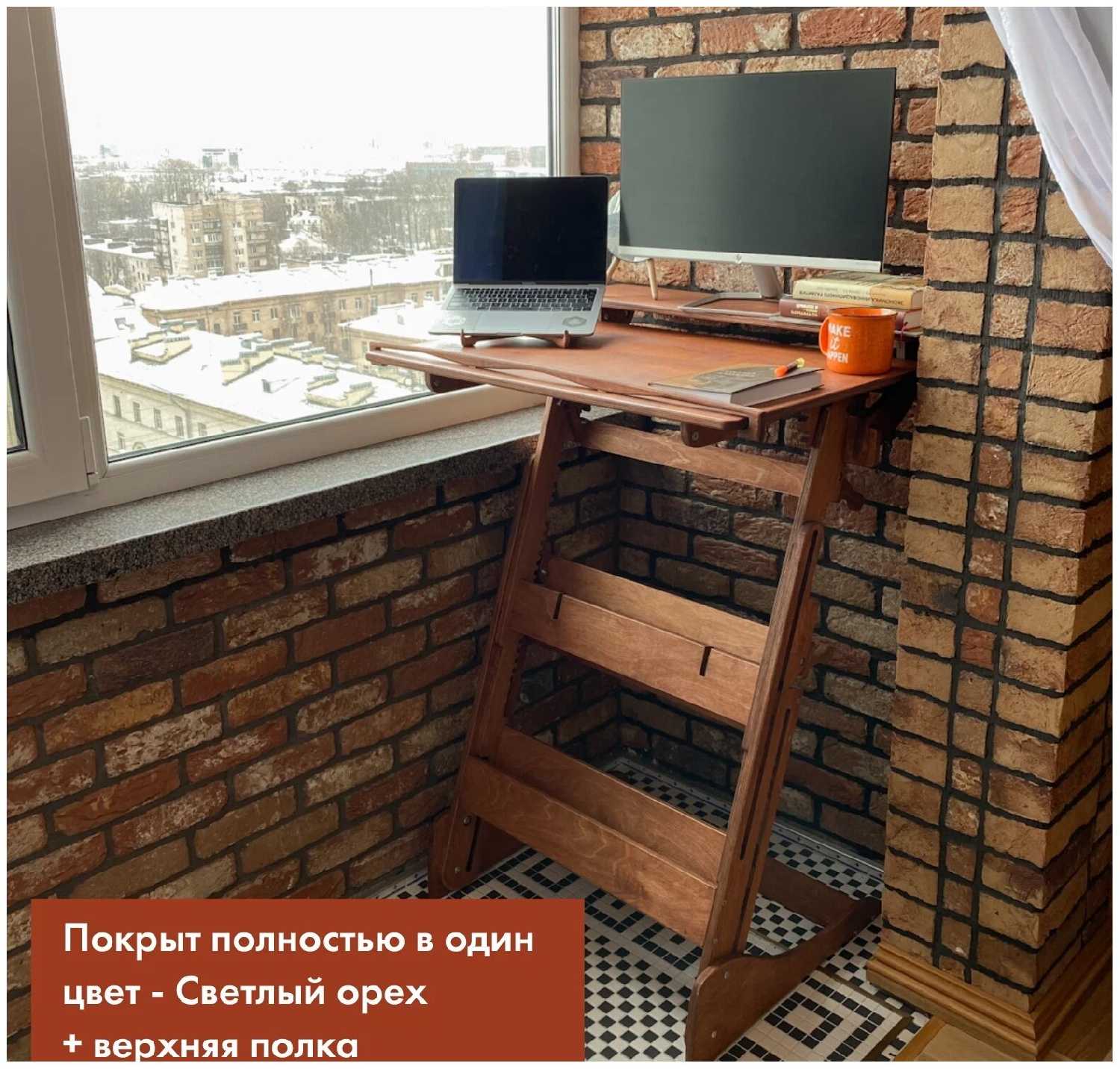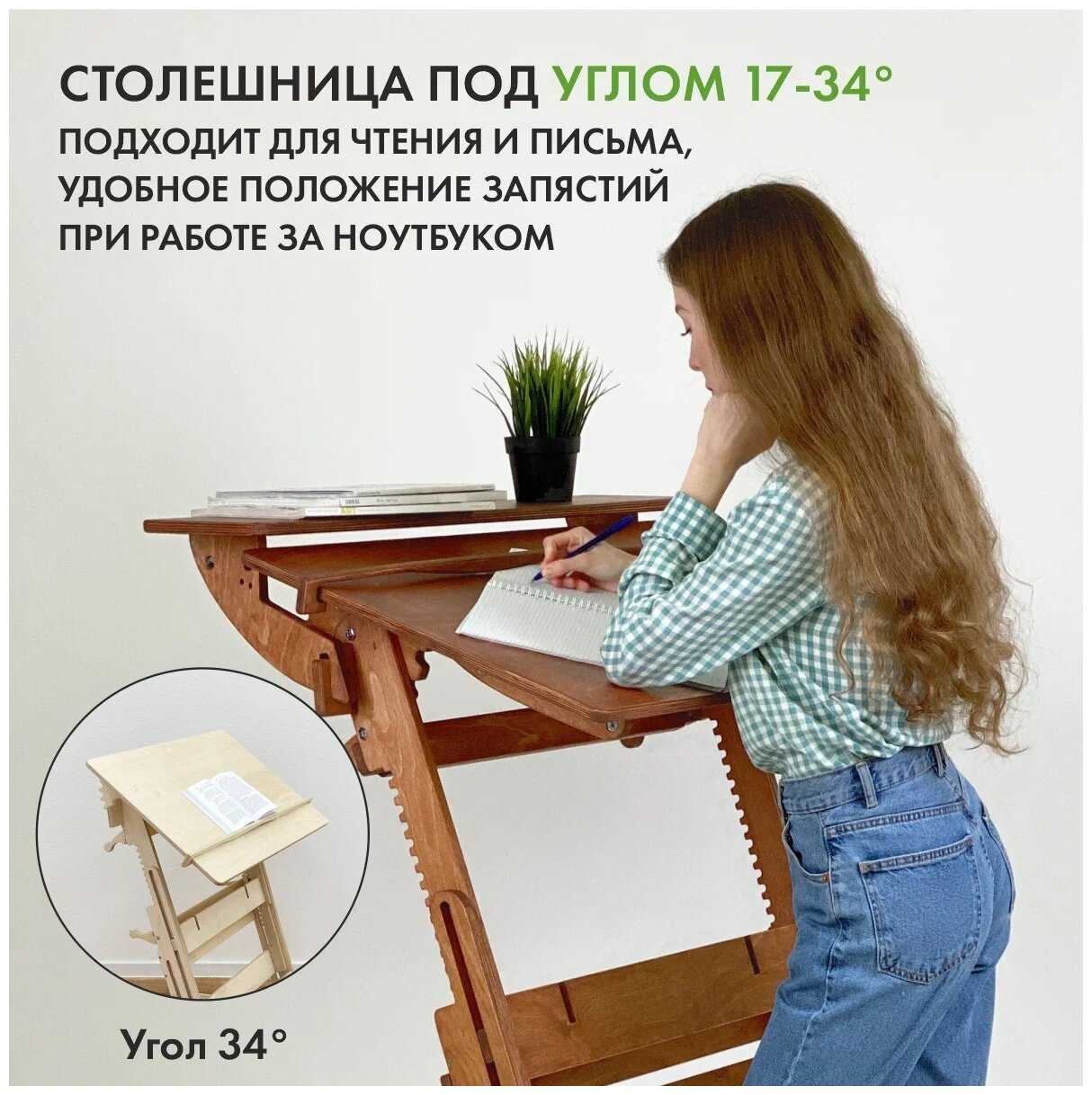 Стол деревянный, все отверстия на месте, есть подробная инструкция, собирается не сложно. На практике отличная идея. Можно и стоя работать, и сидя, НО смена высоты может быть затруднительна, особенно для ребенка. Провощила желоб, по которому двигается конструкция, стало полегче, но все же силы требуются. Не могу отнести это к минусам, скорее к особенностям конструкции. Стол понравился, изготовителю успешной работы и процветания 👍