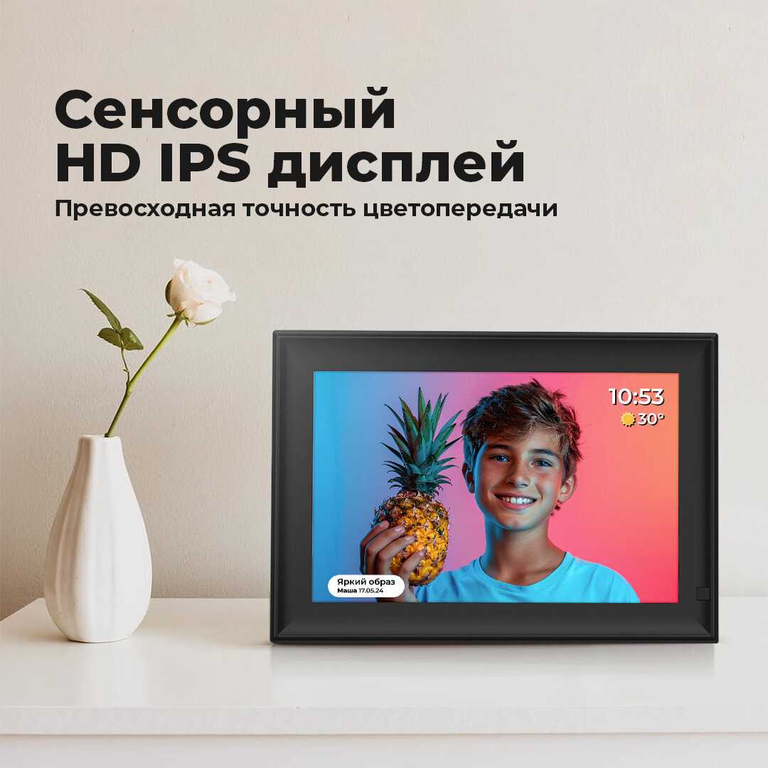 Шикарная рамка подходящая как для домашнего использования, так и в качестве идеального подарка к близким. Благодаря хорошей матрицы и высокому разрешению передаваемая фотография будет максимально приближенной к реальному изображения. А благодаря большому объему встроенной памяти в 64 ГБ хранить фотографии на фоторамке можно в бесконечном количестве, а если ещё использовать флешку и карту памяти и того больше. Очень понравилось что фоторамка поддерживает Wi Fi, в неё можно закинуть видео, которое ещё воспроизводится со звуком.