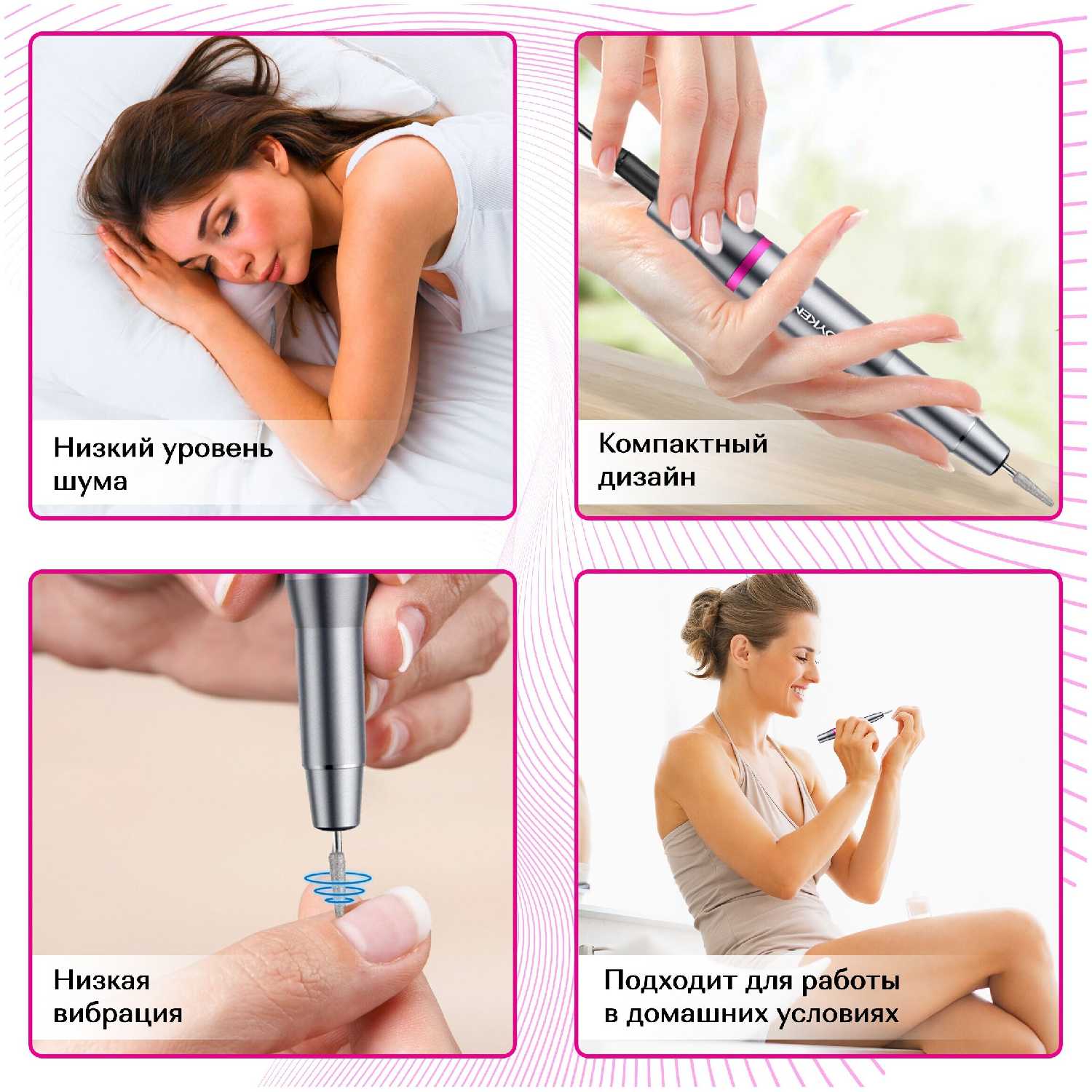 - Максимальный крутящий момент (0.8 Н·м) недостаточен для снятия акриловых типсов или обработки грубых мозолей.