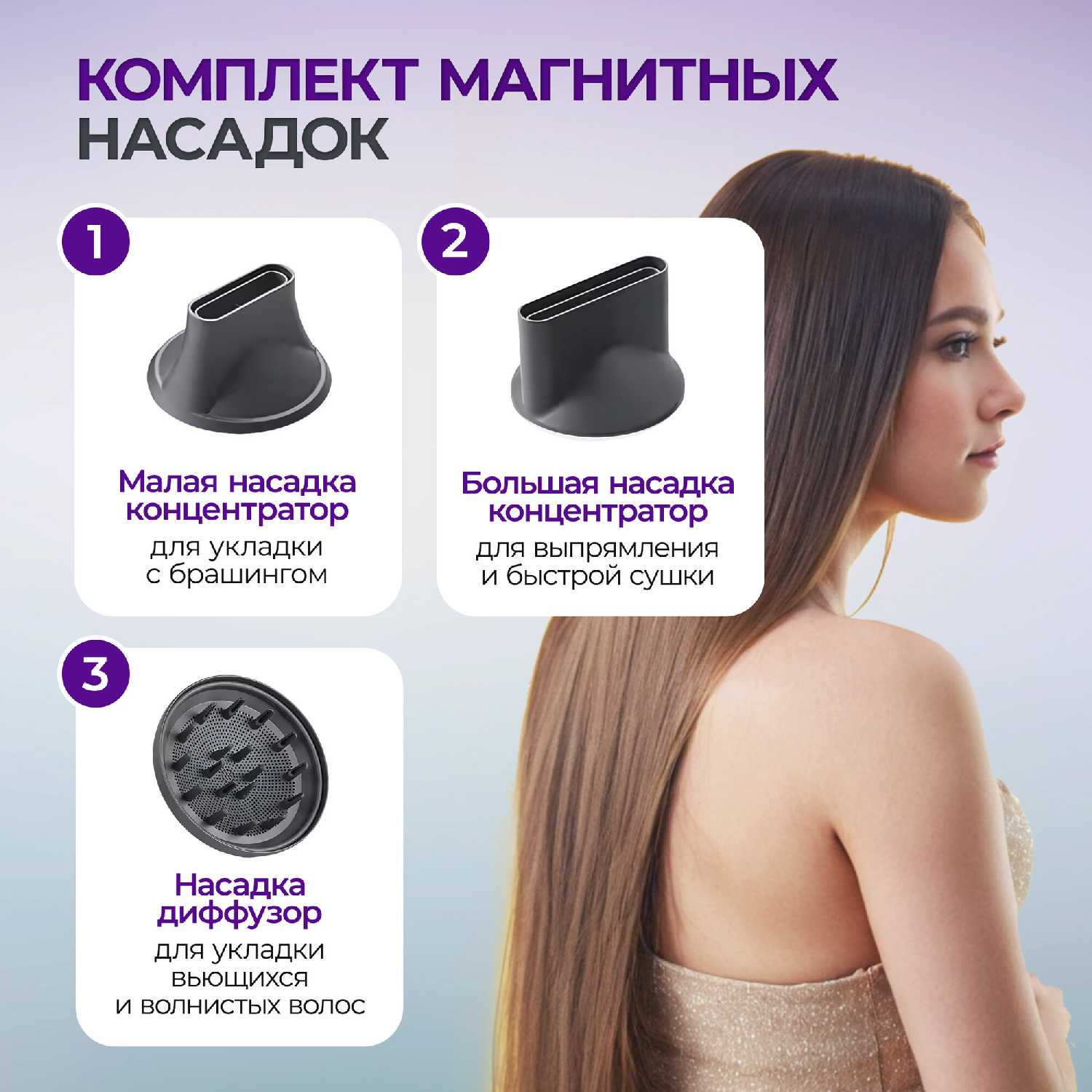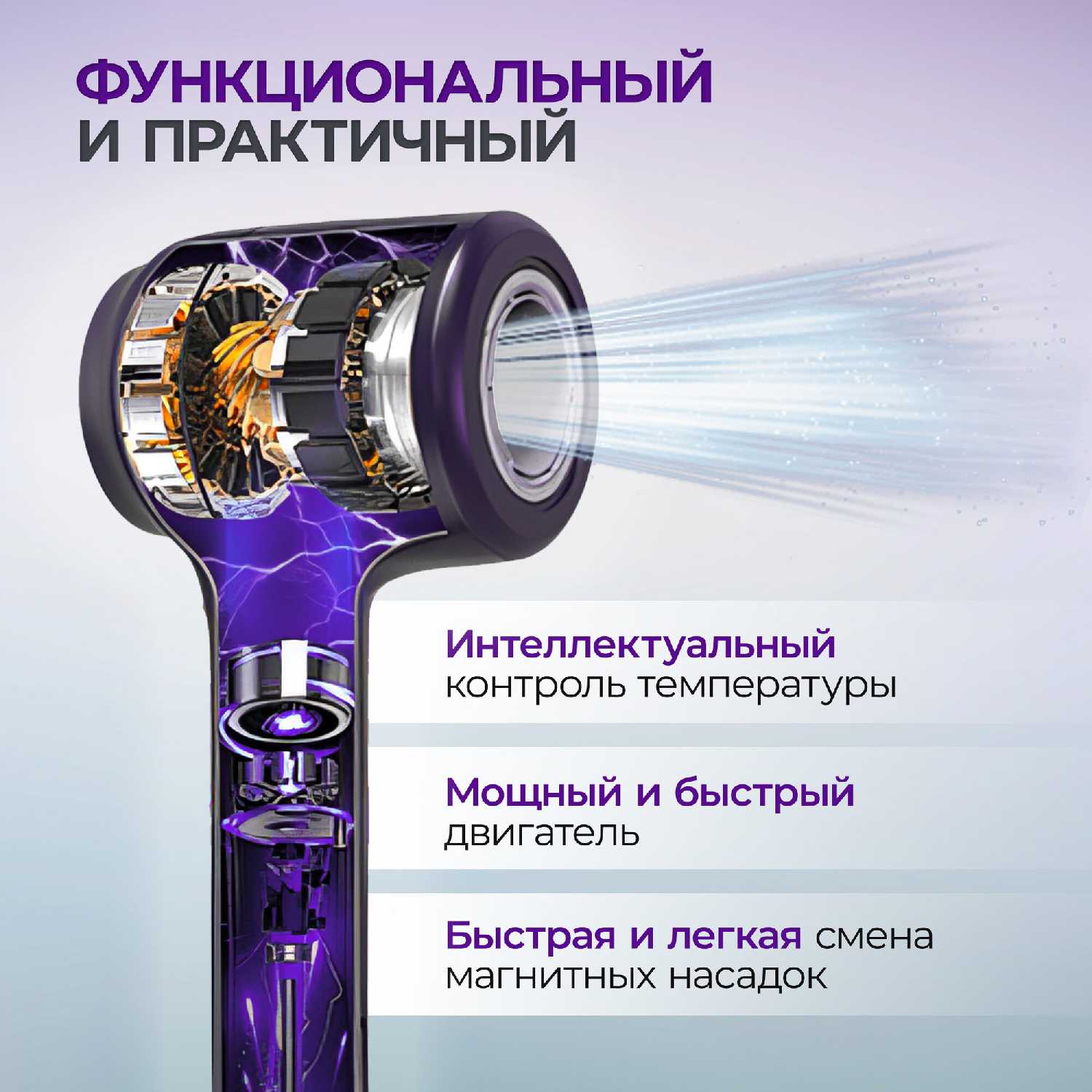 - + Стильный. Легкий. Тихий. Магнитные насадки.