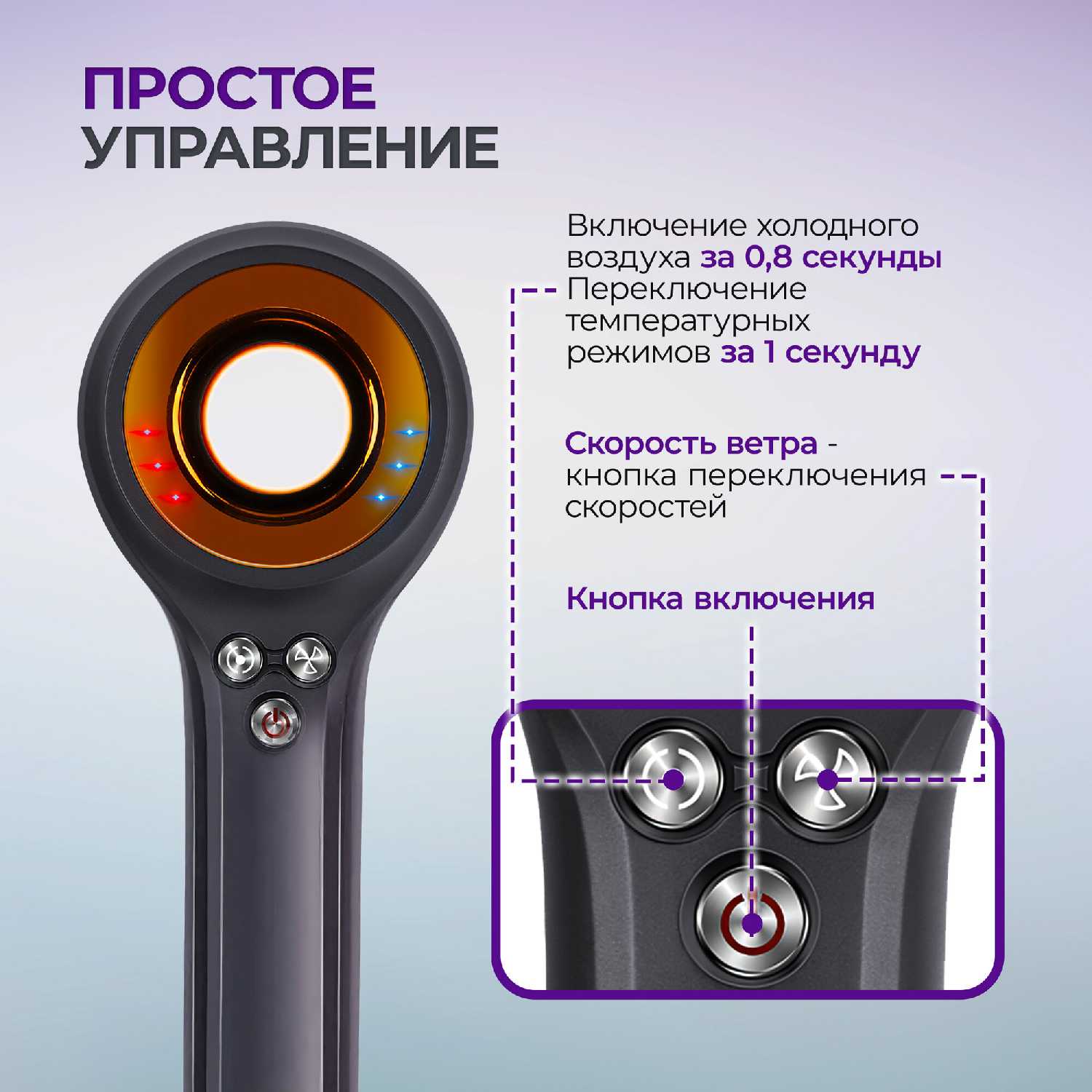 - независимая регулировка нагрева и воздушного потока